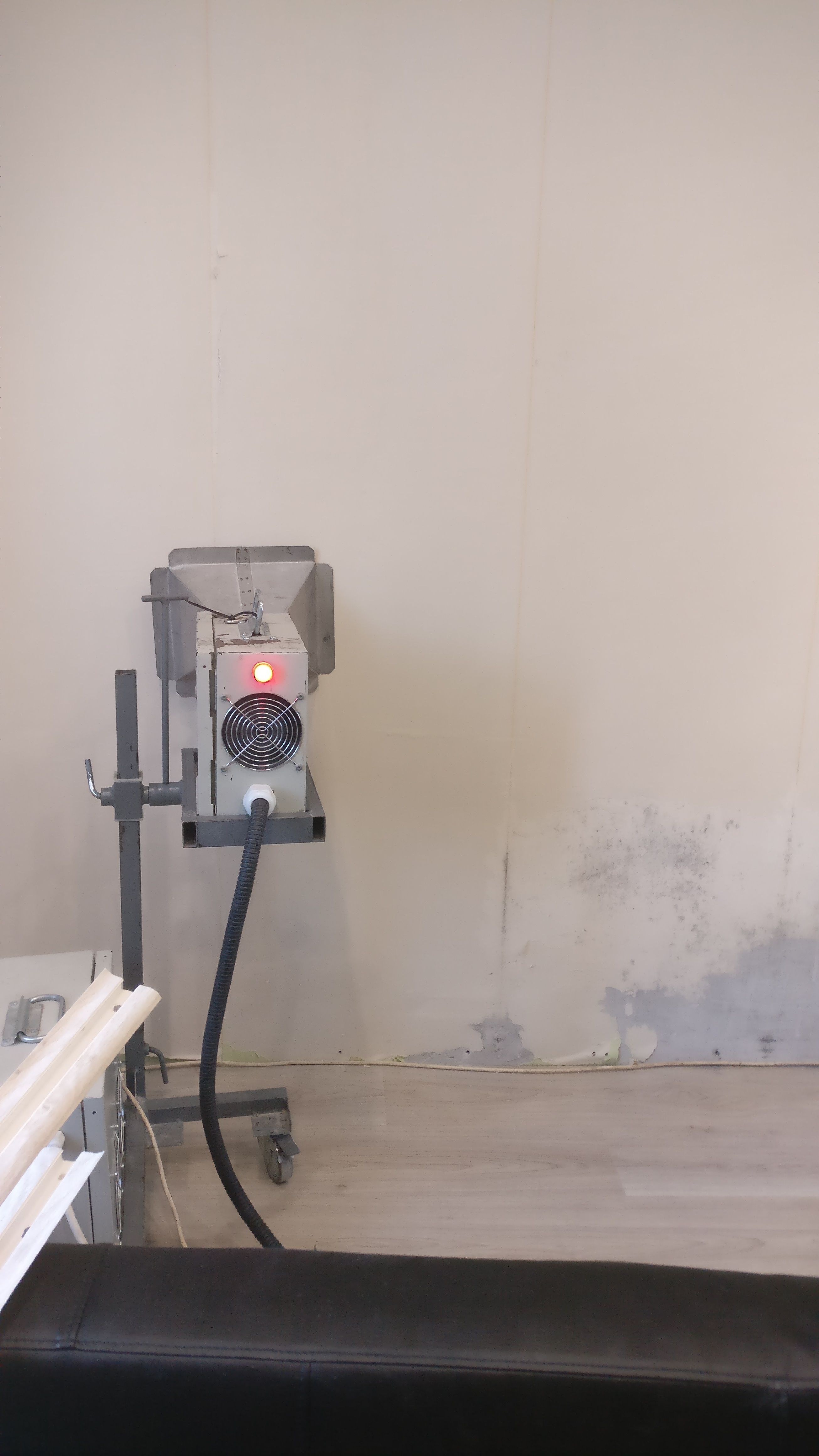 Так же как плесень любит сырость и влагу, так же она ненавидит тепло и сухость. Идеальный метод обработки любых поверхностей от плесени это СВЧ. Материал прогревается участками 50*50 до температуры 65-70 градусов буквально за несколько минут на глубину 25-35 см. Грибница плесени не выдерживает таких температур и полностью погибает. Наши специалисты используют лазерные пирометры для точного определения температуры нагреваемой поверхности так как споры плесени спокойно чувствуют себя при температуре до 60 градусов. Это просто необходимо контролировать. Измерение температуры обычным термометром не подойдет так как необходимо учитывать коэффициент теплоотдачи каждого материала в отдельности для точного измерения. В домашних условиях — это практически невозможно без необходимого оборудования